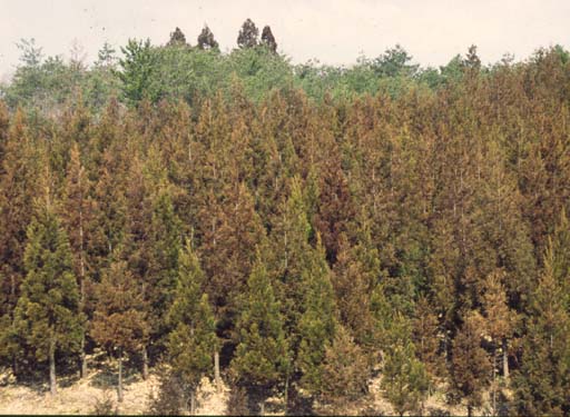 | 花粉が実ったスギ林 石川県内にもスギ林は多く、春にはたくさんの花粉が実ります。 スギ花粉症は、スギ花粉によるアレルギーが原因の病気で、鼻水、鼻づまり、くしゃみや流涙が、多い症状ですが、のどのイガイガ感や咳があることもあります。2月から4月にかけて、スギが花粉を実際に飛ばす季節に症状が出ます。 |